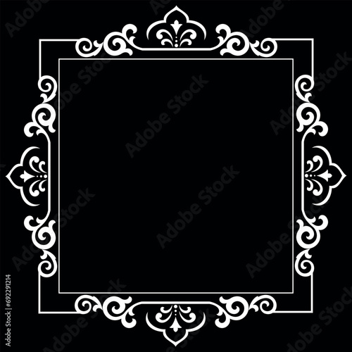 Decorative frame Elegant vector element for design in Eastern style, place for text. Floral black and white border. Lace illustration for invitations and greeting cards