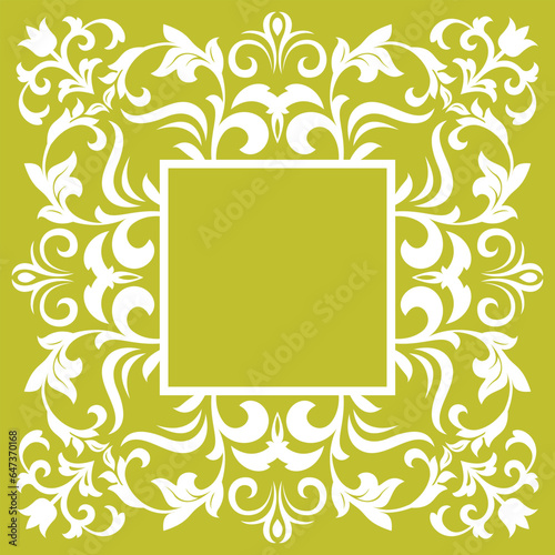 Decorative frame Elegant vector element for design in Eastern style, place for text. Floral yellow and white border. Lace illustration for invitations and greeting cards