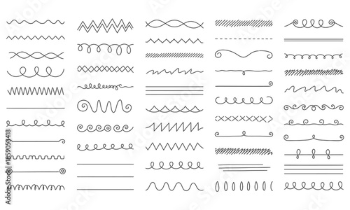 border, divider, line, wave, zigzag, decoration, ornament, set, collection, hand, drawn, doodle, vignetting, vector, illustration, creative, art, simple, minimalist, page, break, book, journal, scrapbook, wedding, invitation, card, design, element, separator, flourish, scroll, black, white, outline, craft, notebook, variety, edge, frame