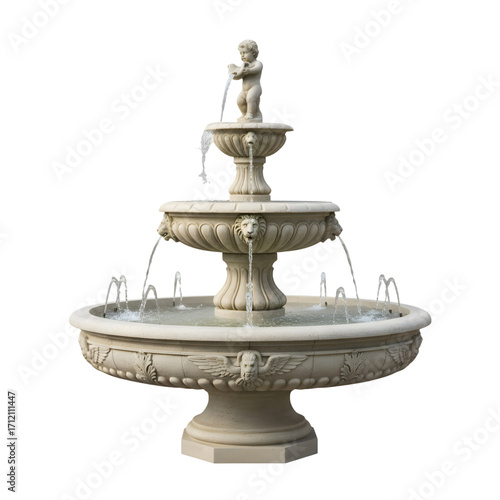 fountain, water, garden, landscape, decor, design, stone, sculpture, statue, architecture, feature, tiered, cherub, lion, basin, element, classic, ornament, art