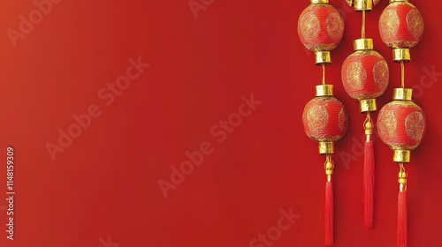Decorative Red Lanterns String Against Bright Red Background for Cultural and Festive Celebrations in Asian Traditions
