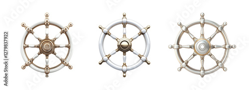 wheel, nautical, ship, boat, collection, set, maritime, steering, vintage, design, decoration, vector, graphic, marin, illustration, art, sea, transport, travel, ocean, background, element, symbol, seafaring, classic, antique, white, gold, shiny, detailed, round, texture, metal, wood, icon, tool, equipment, overall, isolated, three, object, studio, artwork, guideline
