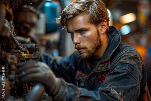 engineer, industrial, machinery, adjusting, complex, professional, determination, sharpened, innovation, precise, technical, workplace, adult, man, bearded, mechanic, intricate, technology, modern, skill, expertise, complexity, occupational, serious, concentration, precision, craftsmanship, manual labor, maintenance, repair, technicality, control, intensity, inspection, manufacturing, engineering, assembly, quality control