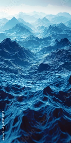 Deep blue ocean surface with large waves and white foam