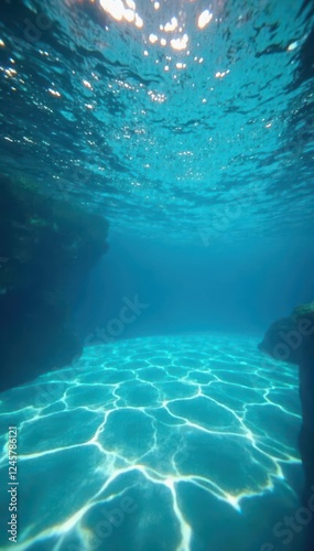 Deep blue pool, gentle waves, underwater view , image, shadow, swim