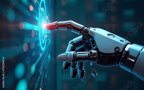 screen, technology, information, illustration, cyborg, pointing, buttons, machine, ai, render, pressing, three-dimensional, deep, learning, artificial, intelligence, communication, intelligent