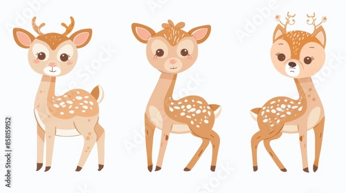 cervid, animal, cute, baby, vector, flat, illustration, wild, nature, wildlife, mammal, portrait, natural, lovely, adorable, art