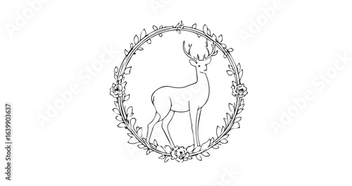 cervid, frame, outline, wildlife, floral, contour, circle, animal, stag, nature, vignetting, vector, design, art, minimal, illustration, forest, antler, stylish, elegant, decor, vintage, wild, decorative, template, graphic, majestic, drawing, icon