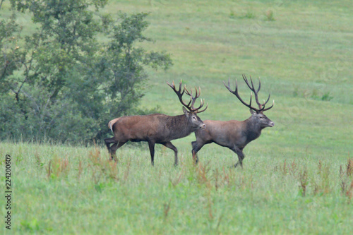 Deers stag in rut season on the meadow