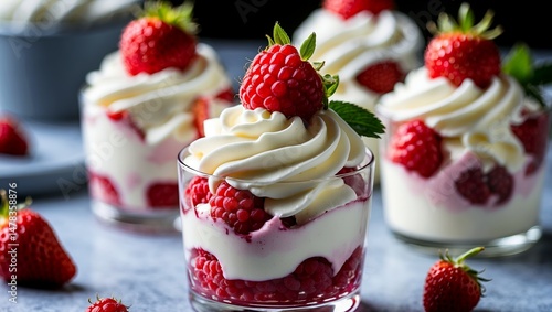 raspberry, dessert, strawberry, whipped cream, selective focus, delicious, delicate, sweet, epicure, food photography, baked goods, pastry, indulgence, cream, culinary arts, tasty, treat, creamy, homemade, luxurious, festive
