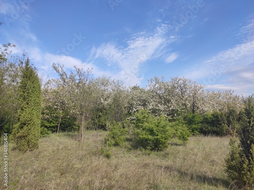 sky, tree, nature, landscape, grass, forest, tree, field, cloud, green, blue, meadow, summer, spring, autumn, road, outdoors, rural, beautiful, cloud, country, season, plant, wood, countryside, sandy, sand