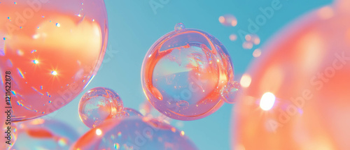 Delicate beauty of crystal spheres surrounded by sparkling glitter and pastel hues