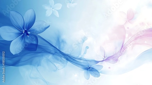 Delicate Blue and Pink Flowers Flowing Abstract Design