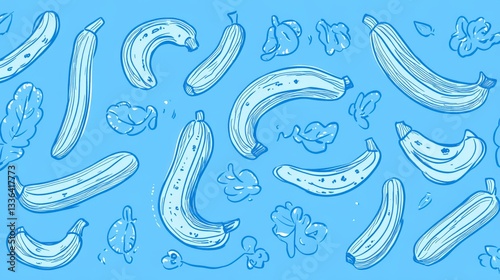 Delicate Blue Zucchini Illustrations: A Fresh and Vibrant Food Pattern