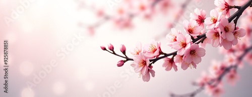 Delicate Cherry Blossoms in Full Bloom Against Soft Pink Background with Copy Space