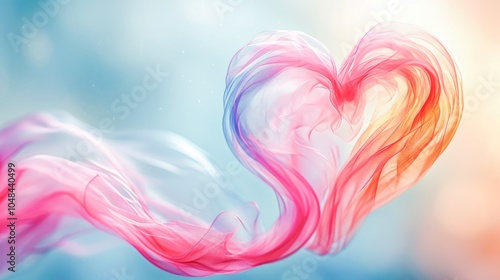 Delicate colorful heart shape fabric flowing on blue background