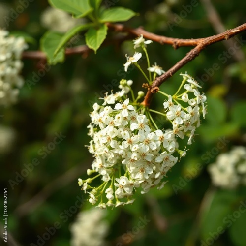 Delicate elderberry flowers on a wooden branch, nature, white blooms, branches