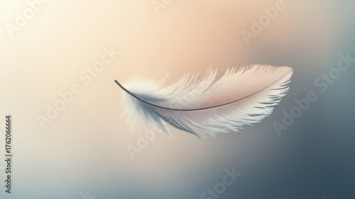 Delicate feather floats gracefully against a soft, blurred background in serene colors