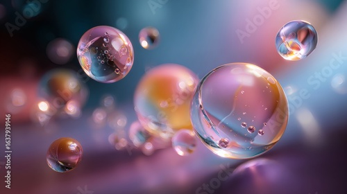 delicate floating spheres with liquid crystal texture, dreamy pastel glow, high resolution 3d abstract art
