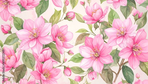 flower, pink, floral, pattern, seamless, blossom, spring, nature, watercolor, branch, leaf, bud, light, pastel, beige, background, delicate, botanical, soft, pretty, elegant, beautiful, tender, springtime, bloom, flower petals, gentle, repeat, illustration, decorative