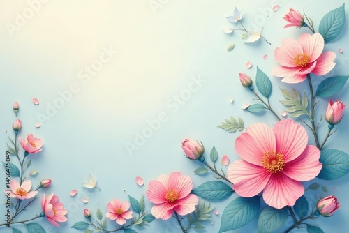 Delicate flower and leaf motif, pastel shades, foliage, illustration, nature