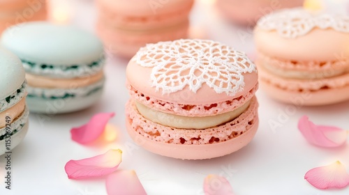 delicate lace macarons & rose petals - pastel colors