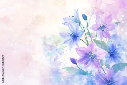 flower, pastel, watercolor, delicate, soft, light, colours, blue, purple, pink, blossom, bloom, spring, nature, floral, artistic, illustration, painting, drawing, botanical, design, image, background, texture, subtile, graphic, decoration, elegant, romantic, tender, pretty, peaceful, calming, vibrant, decorative, poster, pattern