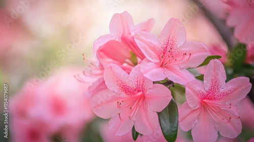 Delicate Pink Azalea Blossoms in Bloom Showcasing Nature's Beauty and Vibrant Colors in a Serene Park Setting