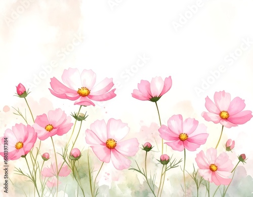 flower, pink, cosmos, watercolor, floral, spring, summer, nature, beauty, delicate, pretty, botanical, illustration, art, design, background, wallpaper, aesthetic, pastel, digital, soft, romantic, blossom, painting, garden