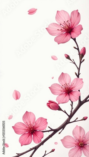 Delicate Pink Flowers Blooming Elegantly Against a Pure White Background Creating a Fresh Spring Vibe