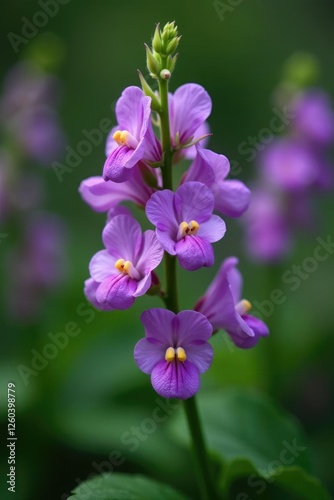 Delicate purple mouse pea flowers on a lush green stem, foliage, purple, garden