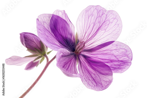 Delicate purple wildflower with multiple petals and a bud isolated on transparent background