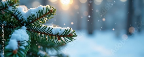 Delicate snowflakes dust pine needles, winter scene , snowflakes, art