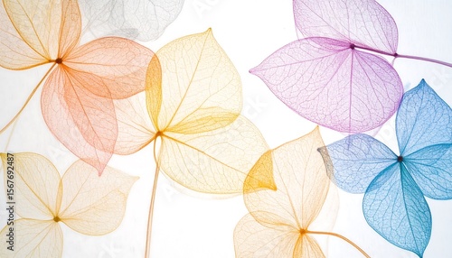 Delicate Transparent Leaves in Soft Pastel Colors on a Light Background for Artistic Design