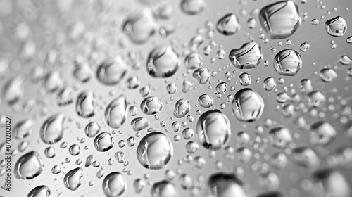 Delicate water drops adorn the surface of stainless steel, creating a visually striking scene.