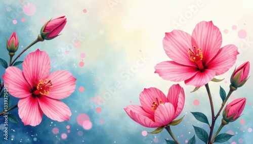 Delicate watercolor blooms, vibrant hues, soft petals , painting, floral