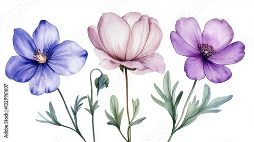 flower, flora, watercolor, bloom, plant, nature, botanical, leaf, vibrant, pink, purple, blue, artistic, design, illustration, gift, decor, arrangement, beauty, simplicity, elegance, spring, garden, fresh, colourful, soft, texture, blend, concept, creative, aesthetic, graceful, season, light, cheerful, natural, style, delicate, landscape, detailed, home decor