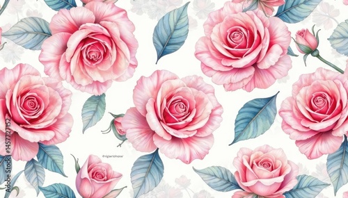 Delicate watercolor roses, soft pastel hues, seamless repeat , textile, pastel