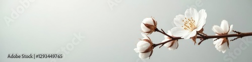 Delicate white cotton flower branch with intricate details, cotton, flowers, simple