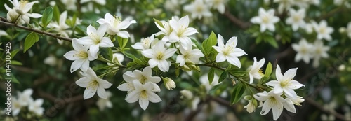 Delicate white jasmine flower buds in a garden, nature, floral arrangement, arabian jasmine