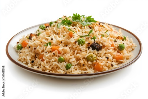Delicious and Tasty the Tradition Kabuli Pulao on a white Background. The Ultimate Comfort Food