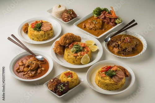 rice, curry, chicken, beef, seafood, vegetable, lemon, garnish, chopstick, spoon, plate, bowl, food, asian, cookery, meal, dinner, lunch, tasty, delicious, savoury, aromatic, fragrant, spicey, rich, creamy, textured, colourful, vibrant, appetising, tempting, satisfying, hearty, wholesome, healthy, balanced, alimentary, protein, carbohydrate, herb, spice, favor