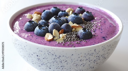 Delicious Blueberry Smoothie Bowl with Almonds and Chia Seeds