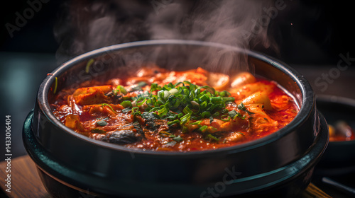 bubbling, stew, kimchi, cooking, meal, cookery, food, hearty, traditional, spicey, herb, vegetable, broth, savoury, dish, preparation, warmth, appetising, culinary, epicure, comfort, aroma, nourishing, dinner, hot, asian, receipe, favor, seasoning, bowl, table, ingredient, garnish, green onion, steam, texture, homemade, wholesome, satisfying, enticing, eatery, plating, presentation, vibrant, rich, classic