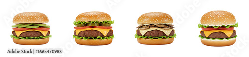 Delicious burger varieties fast food restaurant series studio setting food isolated set PNG