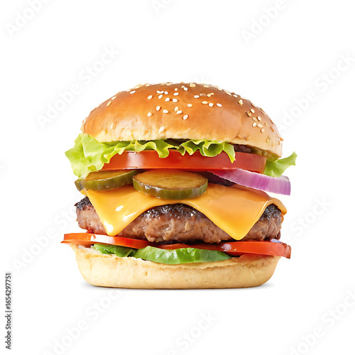 Delicious Cheeseburger with Fresh Vegetables and Sesame Bun