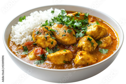 Delicious Chicken Curry Served with Fragrant Rice and Fresh Herbs Perfect for Gourmet Lovers and Chefs isolated on transparent background