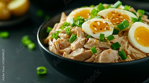 food, chicken, salad, egg, onion, sesame, bowl, delicious, healthy, meal, lunch, dinner, tasty, fresh, protein, cookery, eat, receipe, cooking, dish, epicure, culinary, snack, breakfast