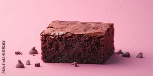 Delicious chocolate brownie displayed on a pink background, showcasing the rich texture and tempting appeal of the chocolate brownie. Perfect for dessert lovers and sweet treat enthusiasts.
