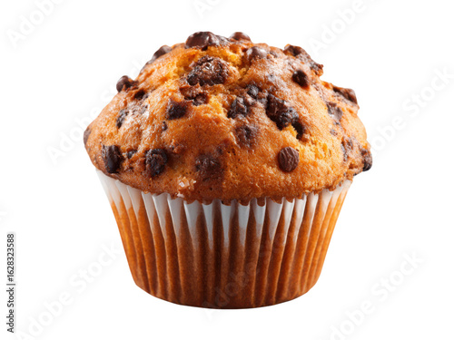 Delicious chocolate chip muffin baked golden brown image, Isolated, Png Transparent Background